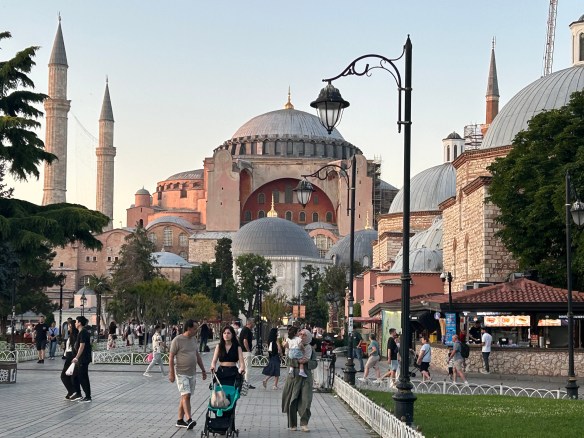 We also saw the other sights in the historic centre, like Hagia Sophia. Completed during the Byzantine era in 537 AD, it was originally a Christian cathedral. When the Ottomans took over, they converted it to a mosque. It was turned into a museum in 1935 and (controversially) turned back into a mosque in 2020. The lines were long and the entry fee was high, so we took a few pictures of the exterior and moved on.