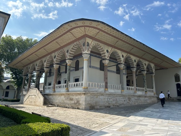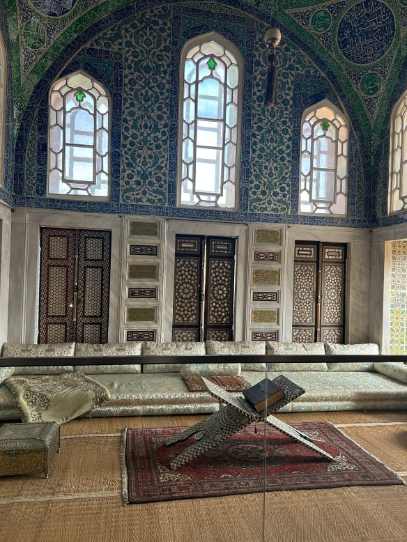 Our main goal for today was to see Topkapi Palace. This was the home of the Ottoman sultans for 400 years. The main attraction is the harem, where the female members of the sultan’s family (his mother, wives, concubines, and children) lived with their servants/guards (eunuchs). Fun fact: Since Islam does not allow the enslavement of Muslim women, most of the concubines were Jews or Christians, given to the sultans as gifts.