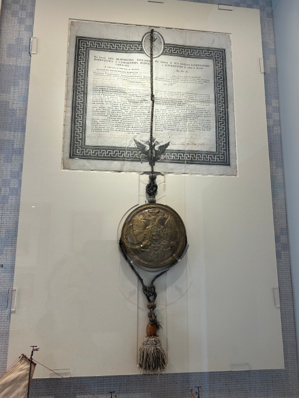 To be honest, I could have happily skipped Mykonos. The island is renowned for its beaches and nightlife, but neither of those things appeal to us. There *is* a significant archeological site nearby, but it requires a ferry ride that can be rough, and I have motion sickness issues. So we wandered through the maze of streets (purposely designed to confuse attacking pirates) and toured the tiny Aegean Maritime Museum, which was full of cool historical artifacts.