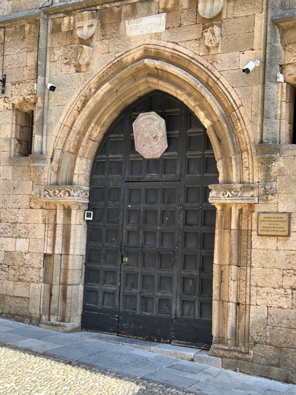 The knights were organized into seven “tongues” based on where they were from: England, Germany, Italy, France, Provence, Auvergne or Aragon. Each tongue had its own “auberge” or “inn” – a communal building that served as residence, meeting place, and dining hall. Walking along the Street of the Knights, you can still see the inscriptions on the walls that indicate which tongue of the knights lived there.