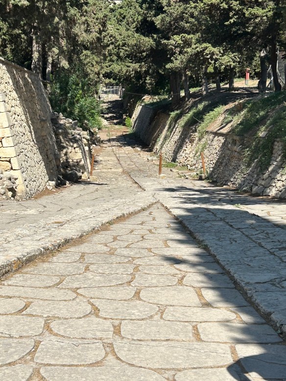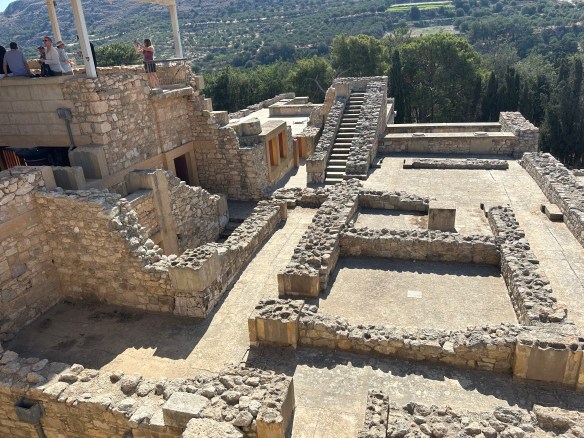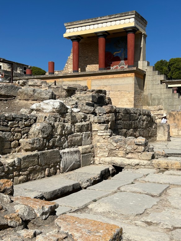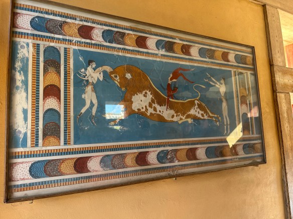 Our destination today was the Palace of Knossos, which dates from 2000 BC and was the centre of Minoan civilization and culture. It’s particularly associated with the myth of the minotaur. Like all Greek mythology, the story is long and complicated, but here it is in a nutshell: