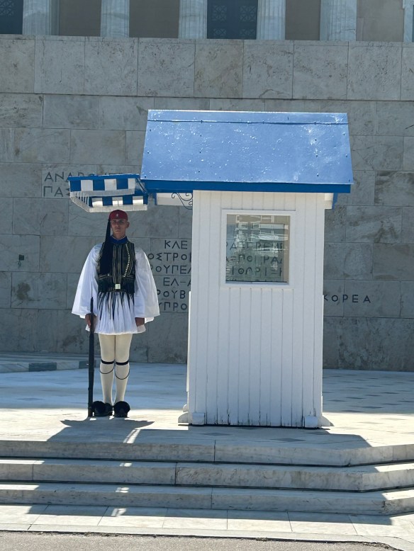 We also made our way to the former royal palace turned Greek Parliament. The Evzones in traditional uniform guard the Tomb of the Unknown Soldier just in front of the building. They perform a ceremonial changing of the guard each hour; we caught a few minutes of it.