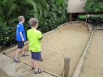 The center showcases native cultures of Samoa, Aotearoa (New Zealand), Fiji, Hawaii, Tahiti and Tonga. The place is basically a theme park with different villages. There are shows in each village, but our boys wouldn’t sit for those. They were much happier doing the hands-on activities such as long poi twirling in Aotearoa (which was pretty hilarious), ancient bowling in Hawaii, and weaving in Tonga. Brayden and I even learned how to dance the hula, though thankfully no one got photos of that.