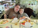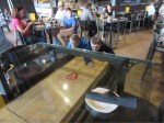 We actually had a pretty neat experience at dinner last night too. We went to NBC Grill and Brew, which not only had hundreds of TVs showing every sport known to man, but also offered special tables with plexiglass covers over different table games (shuffleboard, in our case). So we could eat and drink and play shuffleboard all at the same time. It was pretty much a dream dining experience for the boys.