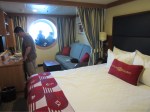 As experienced cruisers, we knew enough not to hit the main buffet, where 90% of people congregate after coming on board. So we made our way to the one sit-down restaurant that was open. This meant we got table service AND a chance to sit inside out of the wind (the main buffet is on the freezing cold pool deck). Good stuff.