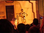 We (barely) managed to stay awake for the Star Wars deck party last night, but I was glad we did. The show featured characters like Darth Vader, Chewbacca, C3PO, and R2D2, none of whom were part of the random character greetings around the ship yesterday. The fireworks were pretty spectacular, too. The boys were beyond exhausted by the time it was all done, but I think they had fun.