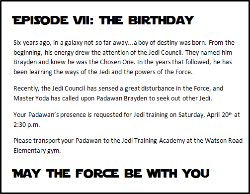 star wars invitation back